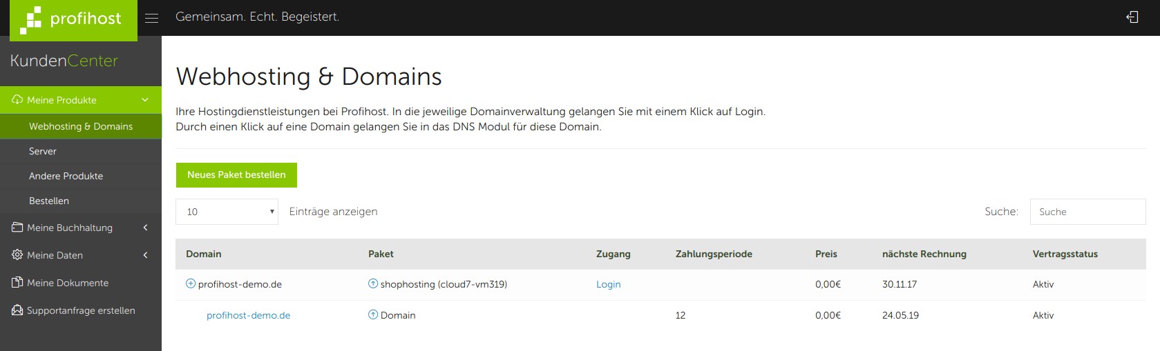 Zum ersten können Sie sich in das KundenCenter einloggen und unter "Meine Produkte" auf "Webhosting & Domain" oder "Server" klicken. Der Servername wird anschließend unter "Paket" (bei Webhosting Tarifen) oder "Servername" (bei eigenen FlexServern angezeigt.)