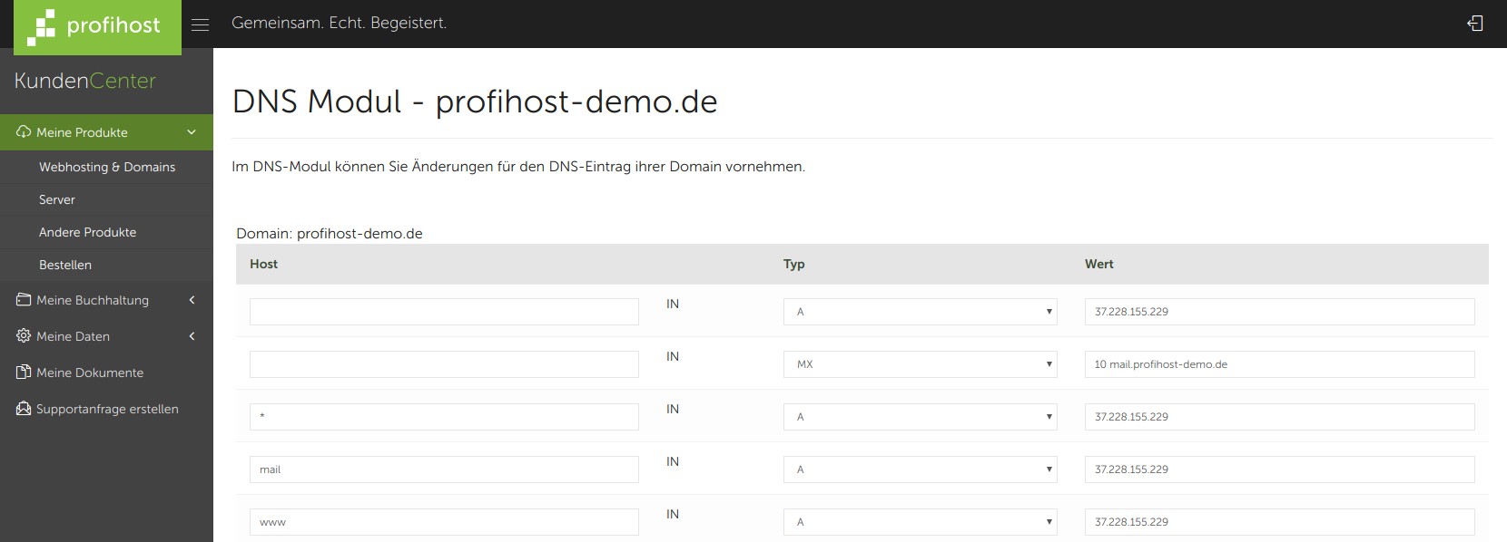 Hinweis: Bitte beachten Sie, dass falsche Eintragungen zu Fehlern bei den gewünschten Diensten führen können. Sie können gerne unseren Support im Vorfeld per E-Mail fragen, ob die geplanten Einträge korrekt sind. Es kann bis zu 24 Stunden dauern bis die Änderungen aktiv werden.