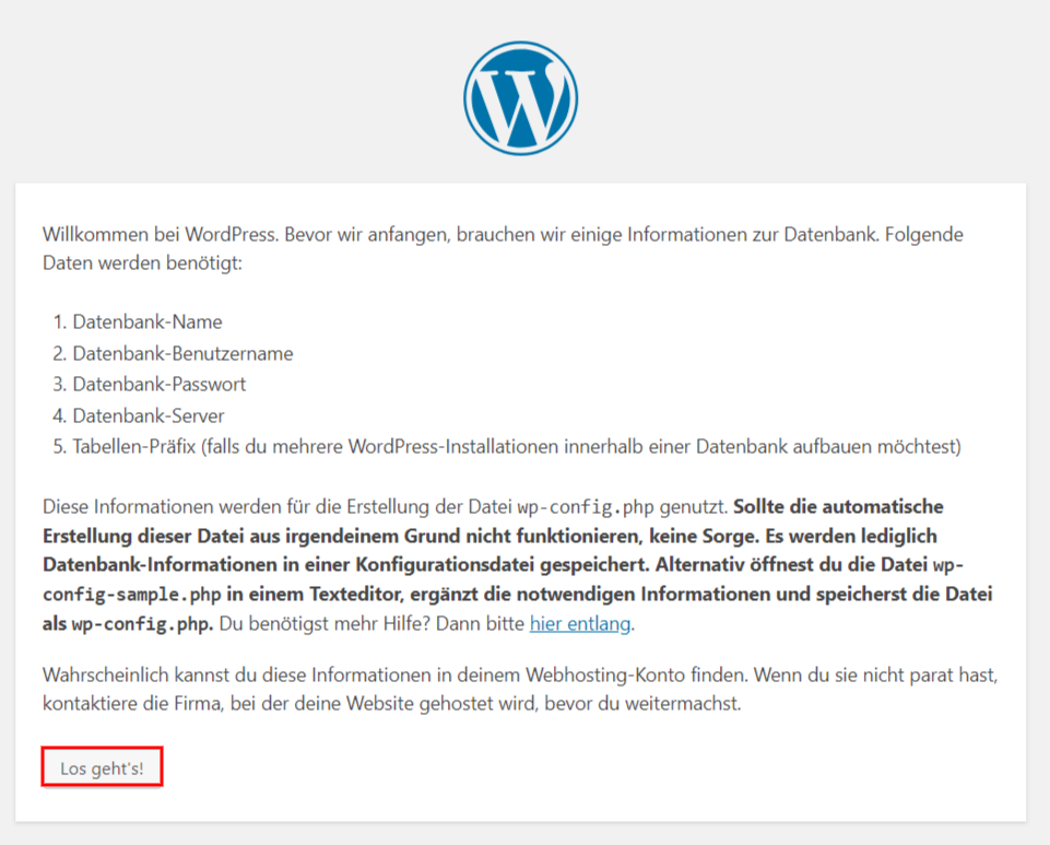 Mit dem Klick auf Los geht’s startet der Installations-Wizard.