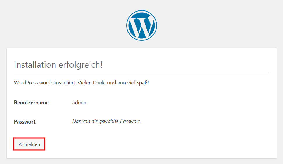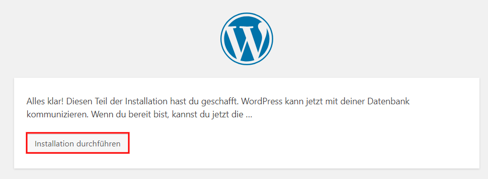Klicken Sie nun im letztem Schritt WordPress installieren.