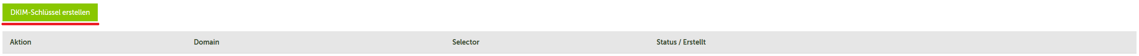 Hinweis: Wenn Sie einen DKIM-Schlüssel generiert haben und anschließend auf "DKIM-Schlüssel bearbeiten" klicken, wird im Anschluss der Status "inaktiv" angezeigt. Es handelt sich dabei um einen Anzeigefehler, den wir mit einem kommenden Wartungslauf beheben werden.
