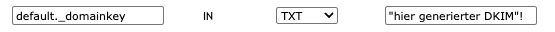 Bitte beachten Sie, dass Sie den Eintrag "default._domainkey" auf unseren Systemen ohne den Folgewert Ihrer Domain eintragen.